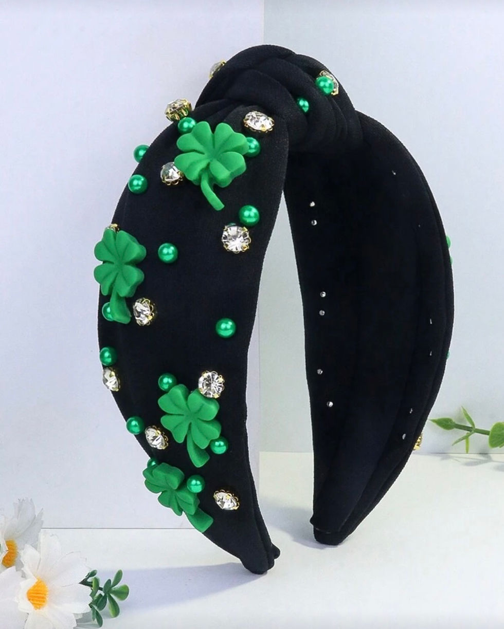 Black with Pink Bow & Crystal Embellished Knot Headband